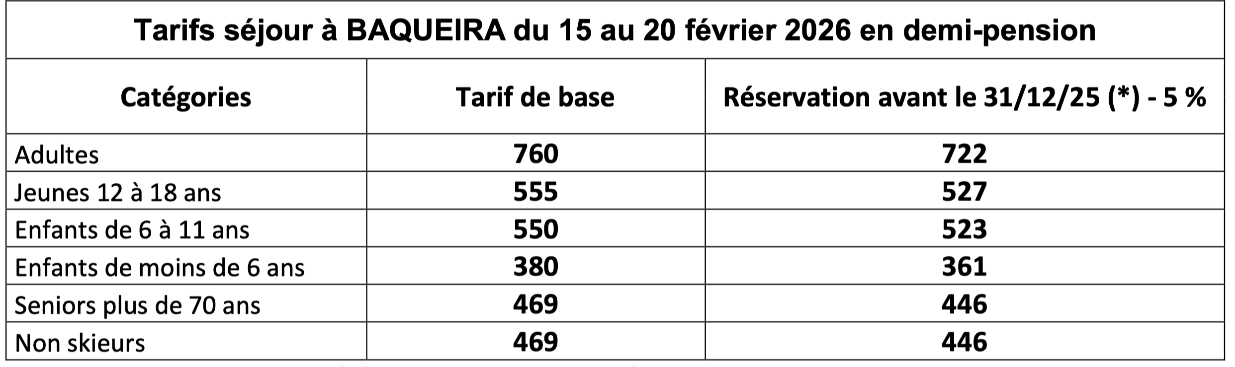 Comprennent : Transport, forfait remontées mécaniques 5 jours, demi-pension, encadrement sur les pistes e matin par les moniteurs fédéraux du club, slalom de club, apéritif et remise des prix.